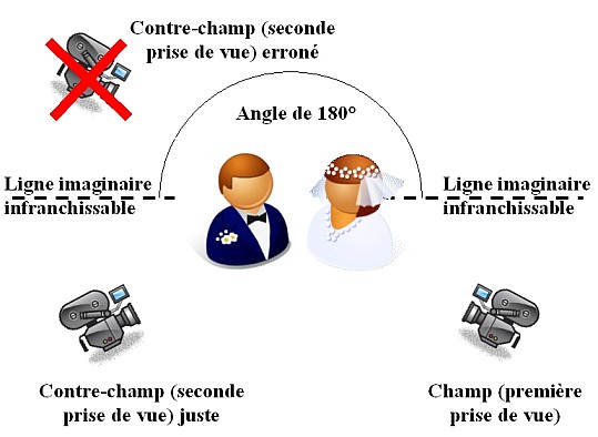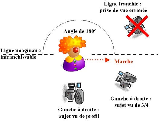 Son principe est le suivant : lorsque l’on filme une scène, il convient de placer la caméra toujours du même côté d’une ligne droite traversant l’axe de l’action principale. On l’appelle la règle des 180° parce que toutes les positions caméra doivent être comprises dans un angle maximal de 180° par rapport à l’axe de l’action principale. Dans le cas contraire, on obtient un inversement des positions apparentes des personnages tels qu’ils apparaissent à l’image. Tout cela devient très clair à l’aide de petits schémas montrant les deux cas de figure.